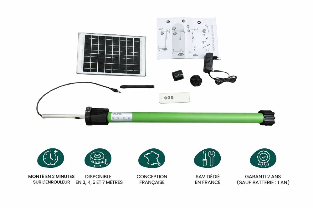 Conçu pour s’intégrer directement dans l’axe de l’enrouleur, ce système offre une installation discrète, rapide et sans coffret extérieur, pour un rendu esthétique et une utilisation simplifiée.