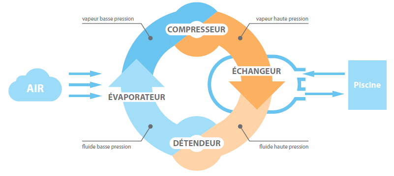 ➔ Transfert : la chaleur est transmise à l’eau de la piscine via un échangeur (souvent en titane).